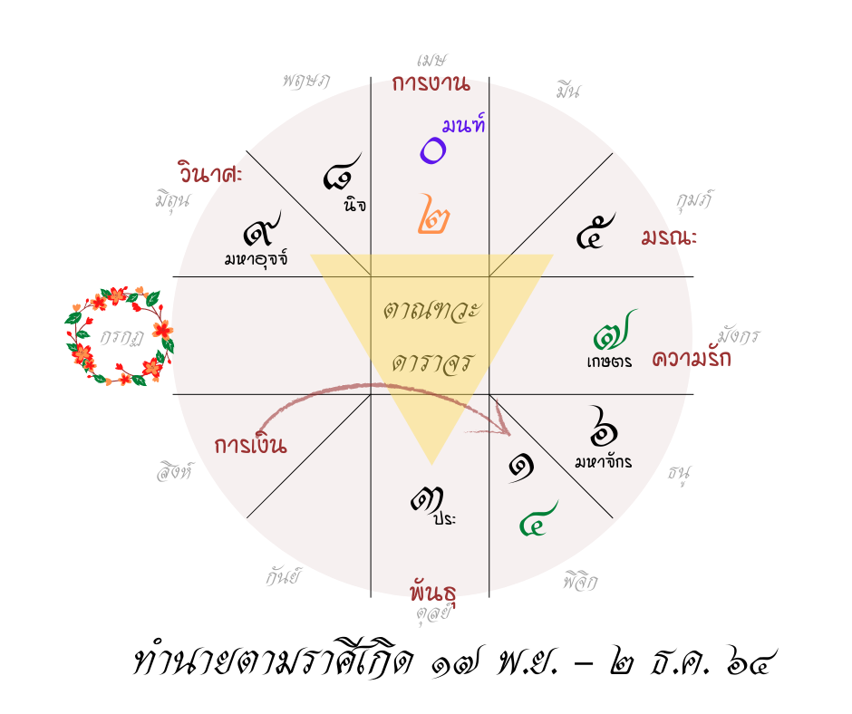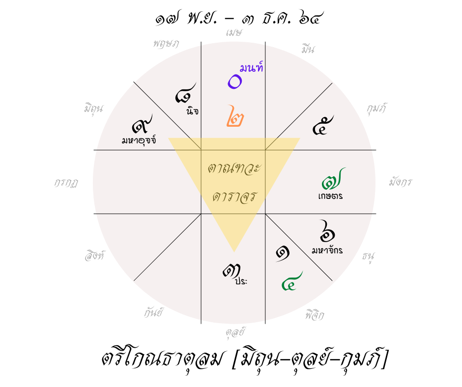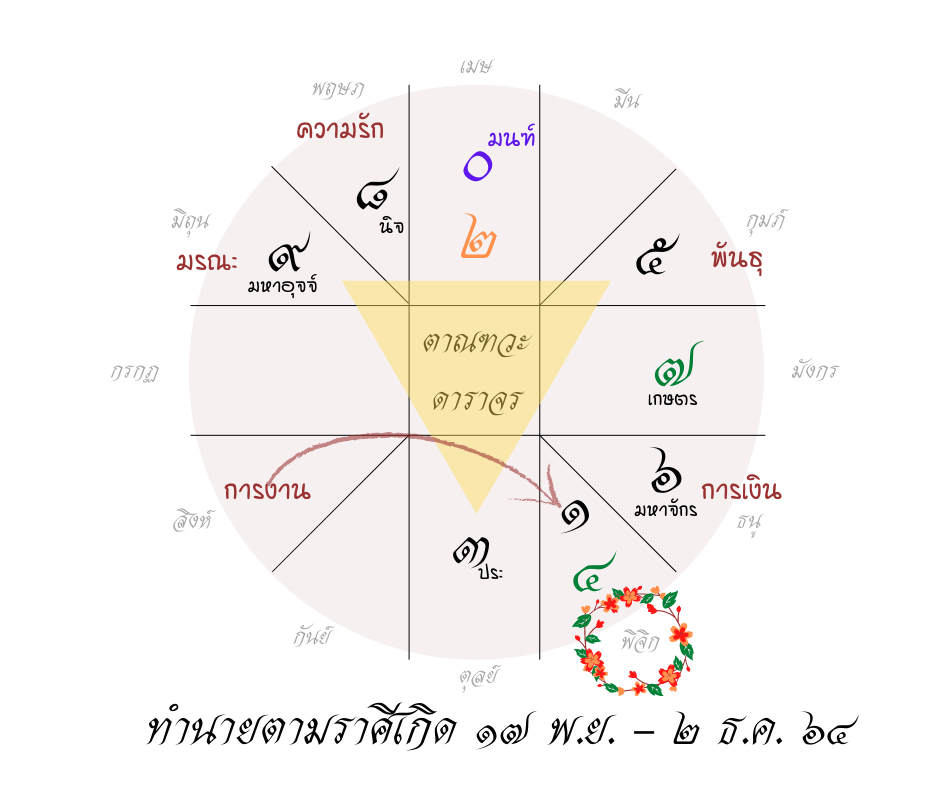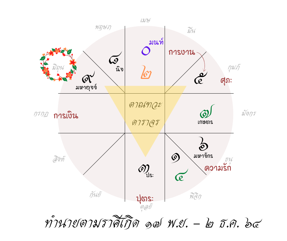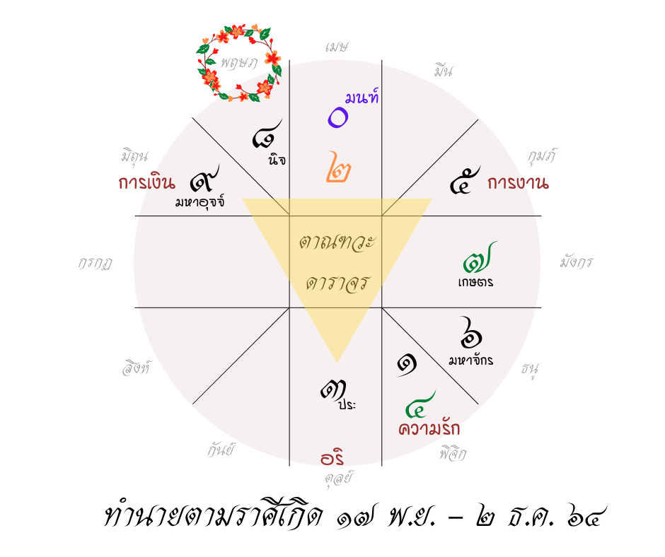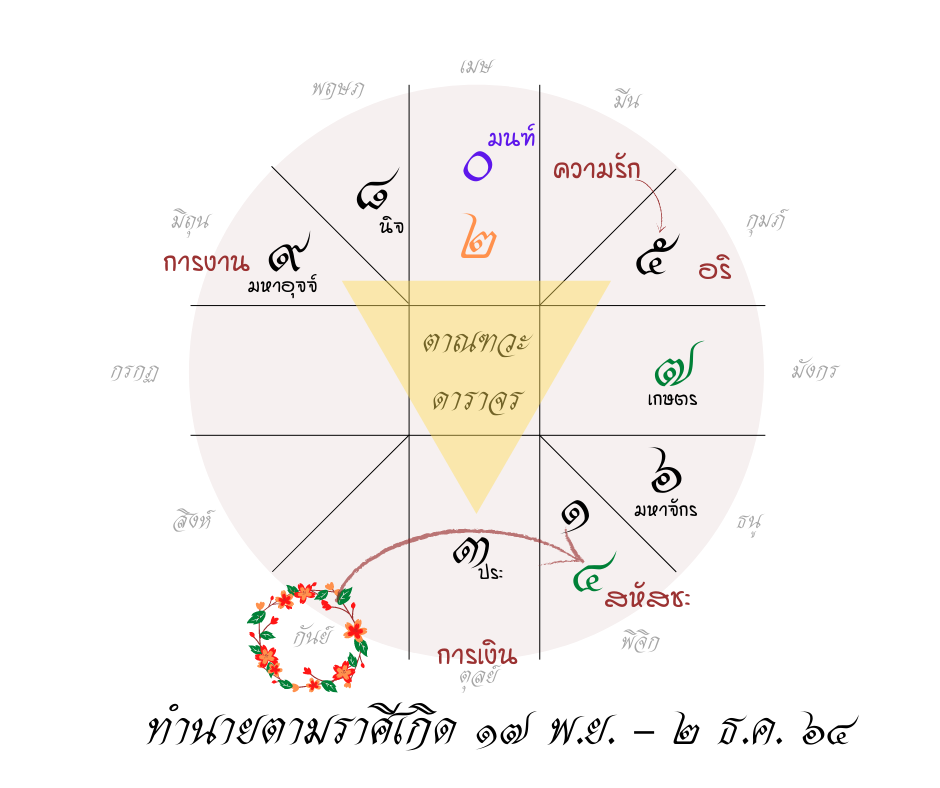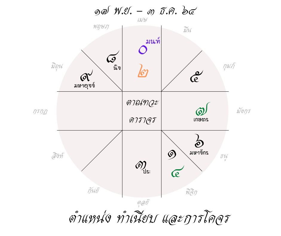 สวัสดีค่ะ วันนี้เชิญพบกับตาณฑวะดาราจร การพยากรณ์ตามดาวจรด้วยโหราศาสตร์ไทย วันนี้จะทำการพยากรณ์ช่วงวันที่ 17 พ.ย. – 3 ธ.ค. 2564