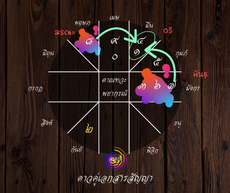 พิจารณาดาวคู่ ๑๔ ที่ราศีมีน เป็นคู่เอกสารสัญญา หรือ การใช้สมอง ในช่วงนี้จะถูกโยคหน้าและโยคหลังด้วยดาวก๊กโจร ท่านที่ทำงานโดยใช้สมอง งานนั่งโต๊ะ งานออฟฟิศ งานเอกสารต่างๆ พึงระวังให้มากในช่วงนี้ เพราะอาจจะเกิดเรื่องแบบโจรๆ ขึ้นได้ ยกตัวอย่างเช่น มีกลโกง การฉ้อฉล ไม่ตรงไปตรงมาตามระเบียบแบบแผนที่ควรจะเป็นเข้ามาได้ สำหรับคนราศีตุลย์ เรื่องเอกสารสัญญาที่ว่านี้อยู่ที่ภพอริ ทายว่า เอกสารสัญญาจะประสบปัญหา มีอุปสรรค